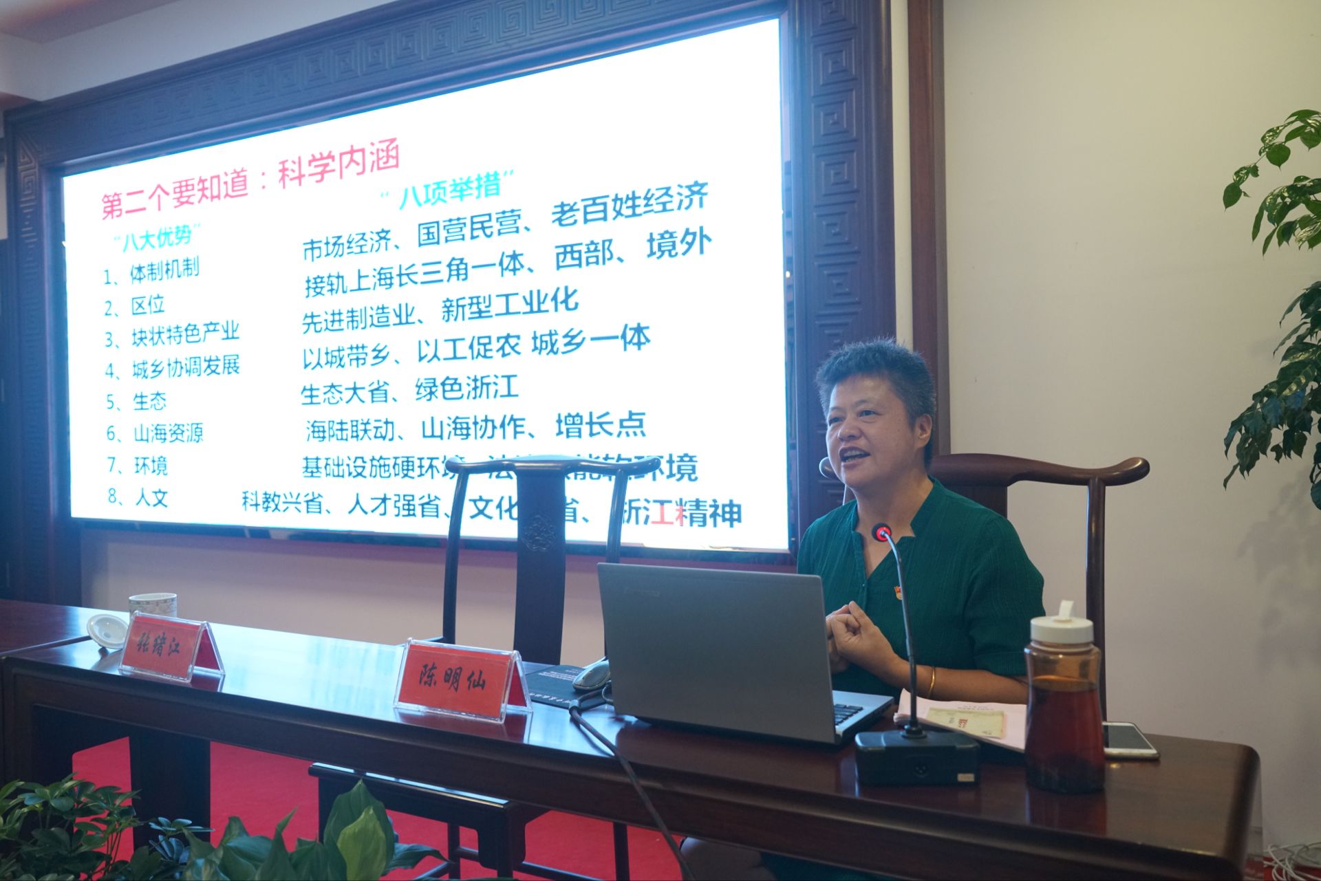 街道黨委委員、辦事處副主任陸炎偉作了涉企政策宣講,市委黨校老師陳明仙為與會(huì)人員上了一堂“八八戰(zhàn)略”黨課。