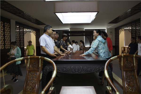 一行人對(duì)公司傳承和發(fā)揚(yáng)紅木文化,精益求精,精雕細(xì)琢的工匠精神大加贊賞。同時(shí),就工業(yè)旅游項(xiàng)目的創(chuàng)建和進(jìn)一步完善等作了溝通交流,互相學(xué)習(xí)提高。