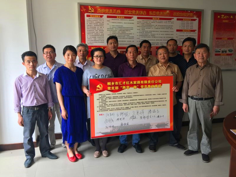 “兩學(xué)一做”工作部署以后,匯才紅木黨支部立即召開黨支部會議,下達相關(guān)工作要求,抓黨建,抓落實,開展了“兩學(xué)一做”系列活動。公司黨建指導(dǎo)員張偉帶頭抄黨章,支部書記徐富根帶領(lǐng)全體黨員開展了專題黨課、宣誓、紅色之旅、做好事等活動。