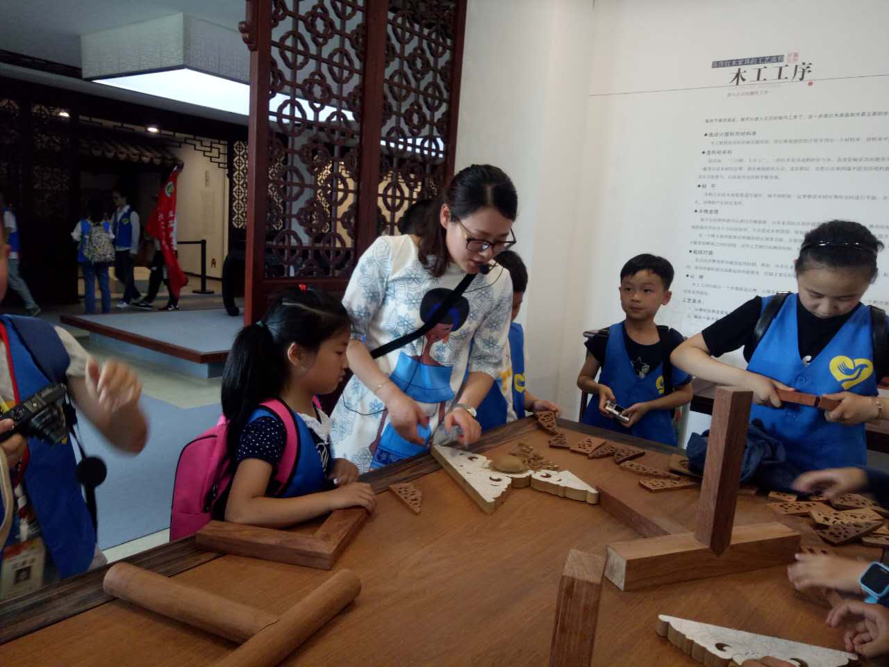 小記者們首先參觀了“蘇作紅木博物館”,了解了蘇作紅木家具的意義和發(fā)展過程,以及紅木、紅木家具的分類。在二樓的“榫卯結(jié)構(gòu)體驗(yàn)區(qū)”切身體會(huì)了中國(guó)古典家具的靈魂——榫卯,以及榫卯的精妙之處。