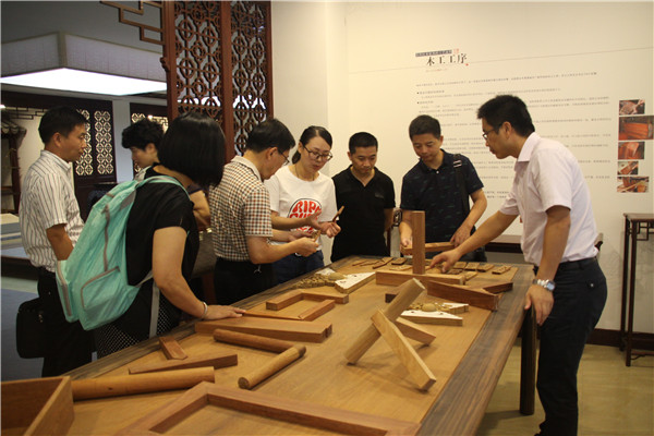 9月1日,平湖市民盟領(lǐng)導(dǎo)一行蒞臨匯才紅木調(diào)研工業(yè)旅游的創(chuàng)建與發(fā)展情況。桐鄉(xiāng)市殘聯(lián)理事長曾正君,旅委副主任李國東等陪同。