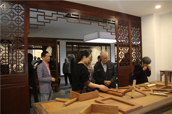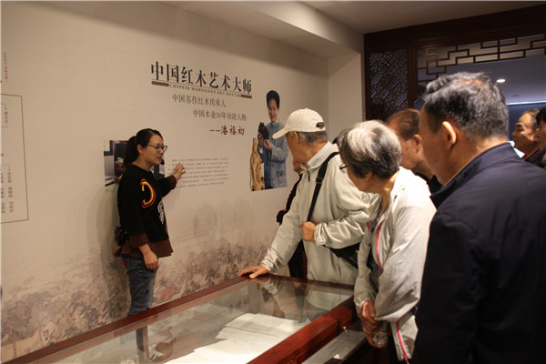 老同志們參觀了公司的蘇作紅木博物館和蘇式園林沁檀園,對(duì)公司濃厚的紅木文化氛圍和蘇作紅木制作技藝大加贊賞。