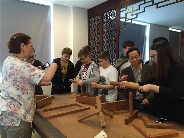 10月18日上午,德國馬爾市·洛坎普一級文理中學(xué)交流團(tuán)的26名師生走進(jìn)匯才紅木,參觀中國蘇作紅木文化博覽園,領(lǐng)略中國傳統(tǒng)文化、紅木文化的魅力,感受江南園林的獨特韻味。