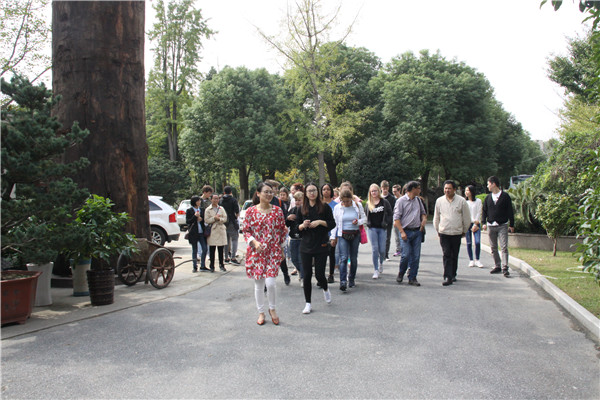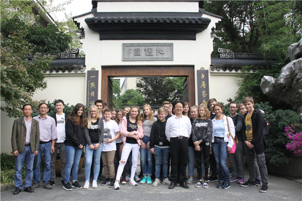 德國馬爾市·洛坎普一級文理中學(xué)交流團(tuán)的友好學(xué)校桐鄉(xiāng)市高級中學(xué)教師沈炳發(fā),匯才紅木總經(jīng)理潘一峰等陪同參觀,并與師生們合影留念。
