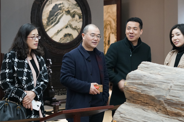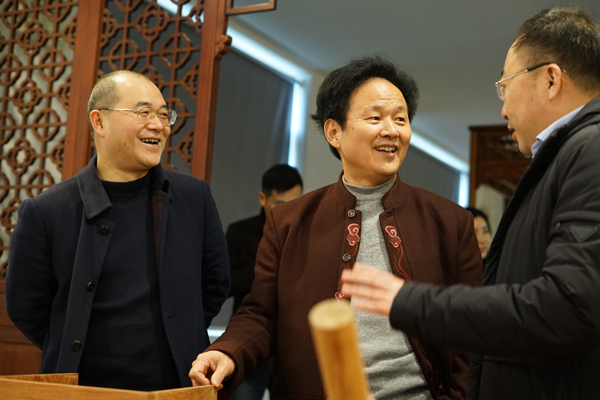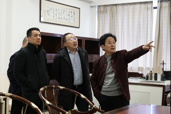 1月16日,嘉興市委常委、副市長鮑九生等蒞臨匯才紅木調(diào)研指導(dǎo)。桐鄉(xiāng)市副市長戚鴻峰等陪同調(diào)研。匯才紅木董事長潘福初接待并陪同。